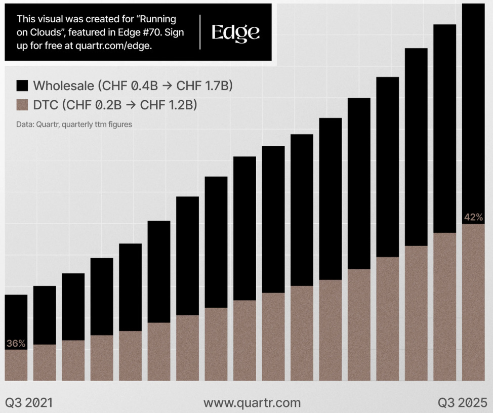 DTC growth increases switching costs. DTC sales reached CHF 314.7 million in Q3 2025, improving control over pricing, customer data, and brand experience, which deepens long-term relationships.