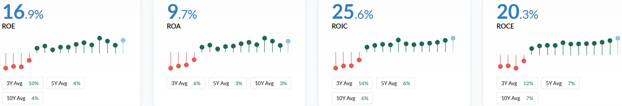 🟨 Positive 3-Year Average ROE: 10%