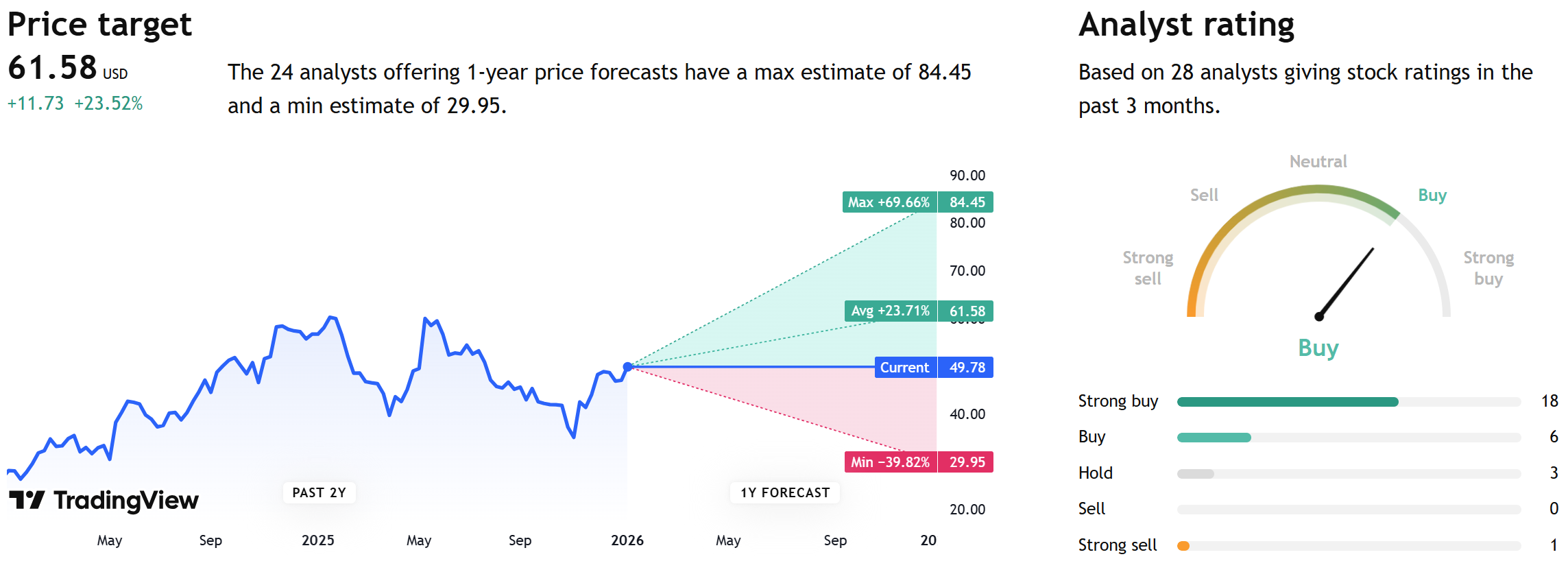 ✅ 1-year stock price forecast is above 10%: +23%