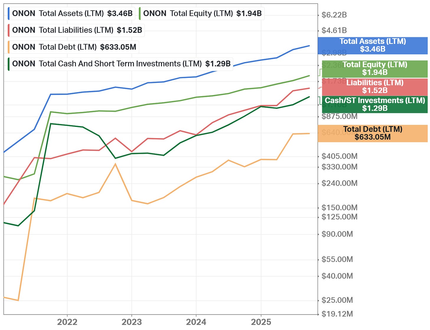 As I wrote above, On follows a conservative and disciplined capital allocation strategy. As of September 30, 2025, the company held CHF 961.8 million in cash and cash equivalents, providing strong financial flexibility and downside protection.