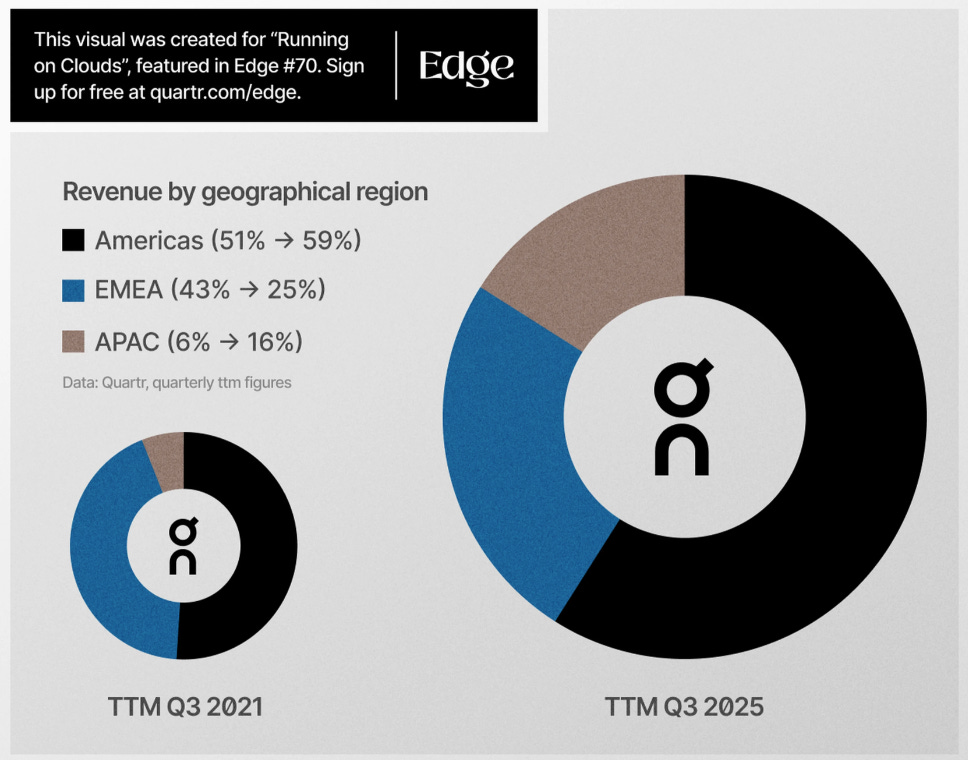 Really solid breakdown on how premium positioning actually translates into lasting operating leverage. The point about Asia-Pacific hitting 90% growth while gross margins hold above 60% is especially telling becuase most brands see compression when scaling new geographies. I saw something similar happen at a previous startup where early wins masked underlying unit economics, but On seems to have the brand strength to avoid that trap. The thing is, if apparel keeps accelerating at that 86% clip without cannibalizing footwear marigns, the customer lifetime value story gets way more durable.