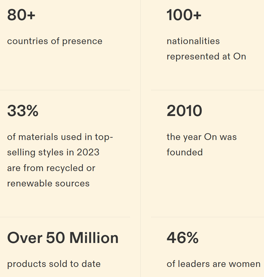 The company is led by Martin Hoffmann, who serves as both CEO and CFO. Hoffmann joined On in 2013 and has a strong background in finance and operations. Under his leadership, the company expanded gross margins, improved adjusted EBITDA, and maintained a conservative balance sheet, while continuing to invest heavily in innovation and brand development.