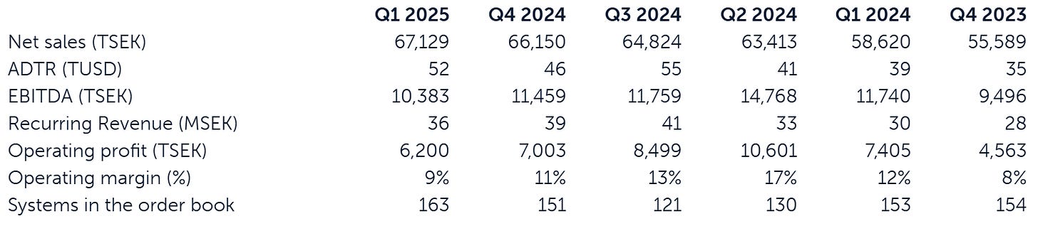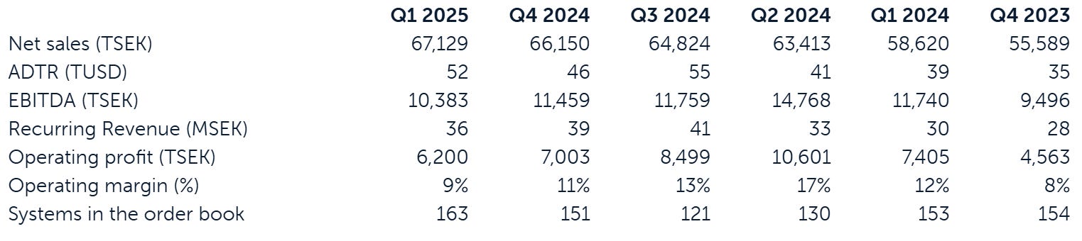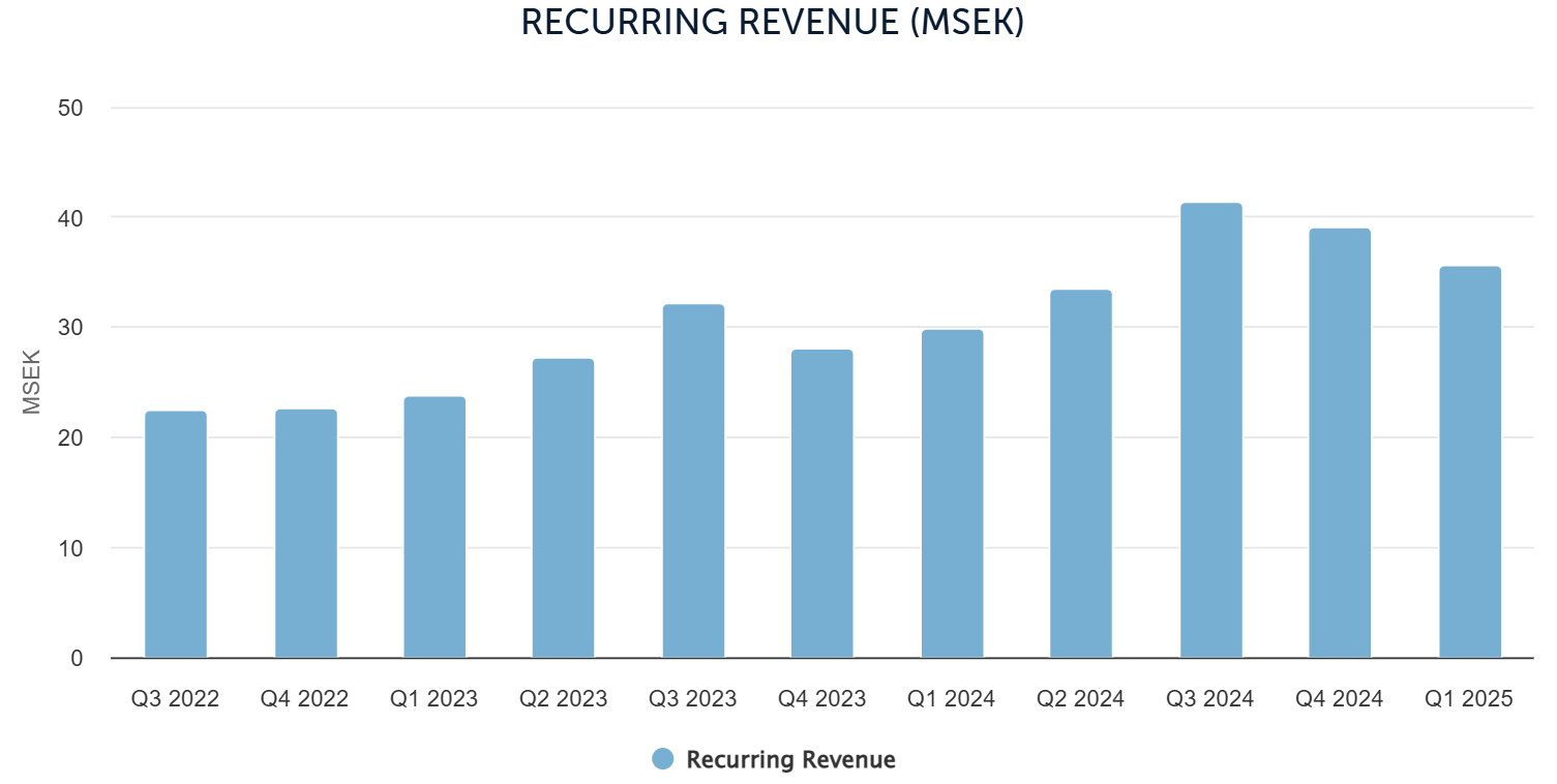 Recurring income is rising steadily. In Q1 2025, the company earned 36 million SEK from repeat sales of caps and treatments, up 19% from the same quarter in 2024. This makes the business more stable and less dependent on new system sales.
