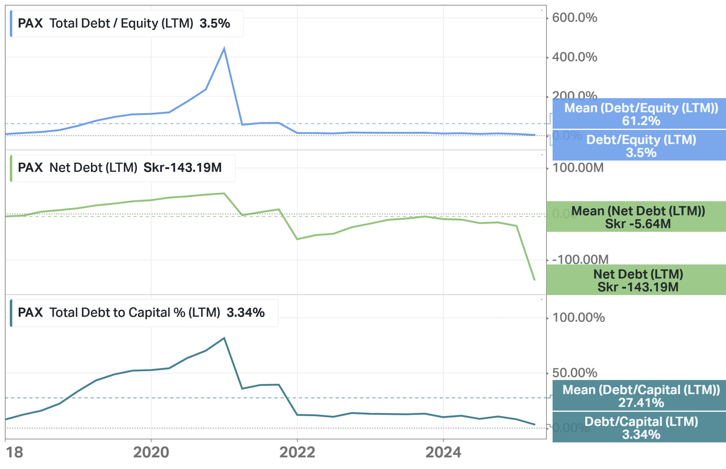 At the end of Q1 2025, Paxman had a strong cash position of 153 million SEK. The company is still investing in growth while maintaining financial stability; it does not pay dividends.