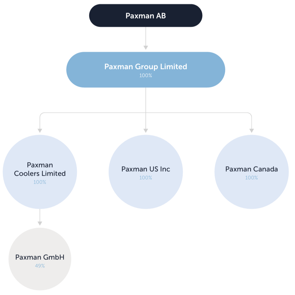 In Germany, Paxman increased its stake in Paxman GmbH to 49%. This gives more control in the region and reduces competition from semi-independent operations that existed before the ownership change.