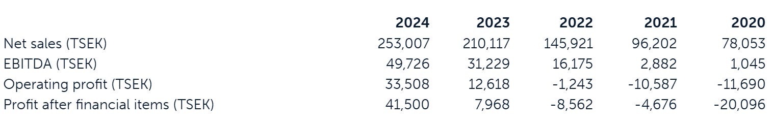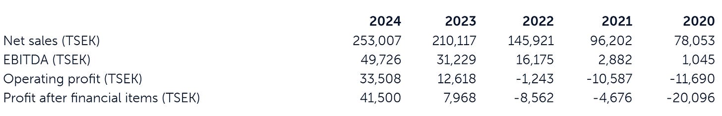 In the first quarter of 2025, the company continued its strong performance, with sales reaching 67.1 million SEK, up 14.5% compared to the same quarter last year.